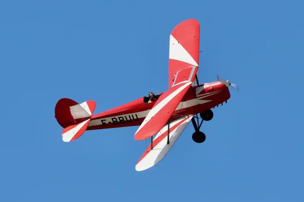 Un Stampe SV4 s’annonce en vent arrière en auto-information. Dans quelques minutes le petit veinard héritera de la première place de membre de la confrérie des Traîne-Queue. Le numéro 1 c’est lui, le F-BBUU.